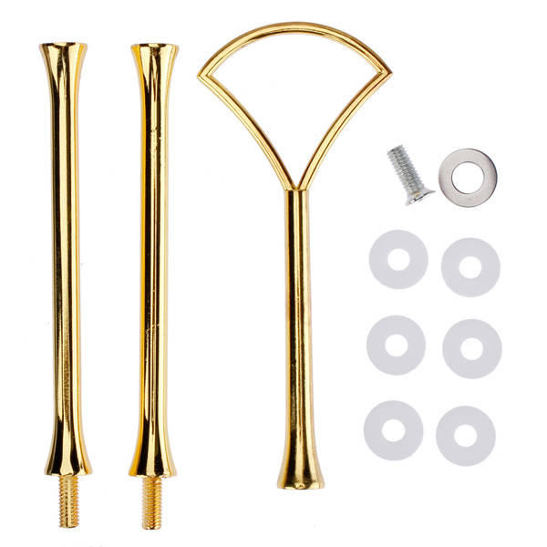 Description: Reusable, durable, practical. Suit for delicate china, jewellery stands, dainty looking stands. Great for candies, dessert, bread, fruit, candy, etc. Fits for a 6mm hole. Can install 2 tiers or 3 tiers according to your need. Not suitable for micro-wave oven. Features & details: Material: Kirsite Color: Silver, Golden Total height: App.14inch Quantity: 1 set Package included: 1 set Cake stands Note: 1. Due to the difference between monitors, the picture may not reflect the actual color of the item. We guarantee the style is the same as shown in the pictures.Thank you for your understanding! 2. Please allow 1-5mm errors due to manual measurement.