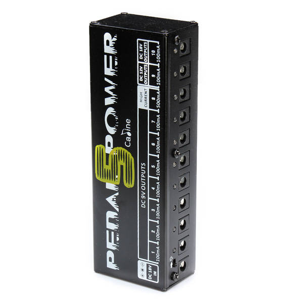 Description: Material: Aluminum alloy Power adapter: AC 100-240V, 50/60Hz Input: DC 18V Output: 7 way 9V 100mA 1 way 9V 500mA 1 way 12V 100mA 1 way 18V 100mA Power for: 9V, 12V or 18V Pedal Power supply size: 14.8 * 5 * 3.2cm / 5.8 * 2.0 * 1.3in Power supply weight: 185g / 6.5oz Package size: 16.6 * 15.5 * 6cm / 6.5 * 6.1 * 2.4in Package weight: 565g / 1.2Lbs Features: Ten isolated output. Isolated short circuit / overcurrent protection. Powers for 9V, 12V or 18V Pedal. Bright blue LED for Pedal Board lighting & short circuit indicating. Includes cables. Package Includes: 1 x Caline Power Supply 1 x Power Adapter 10 x Power Cables 2 x Polarity Reversal Cables