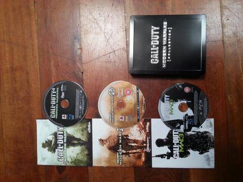 Official PS3 collectors edition metal casing including: CoD4 Modern Warfare, CoD Modern Warfare 2 and CoD Modern Warfare 3. All games are accompanied by the game booklet.