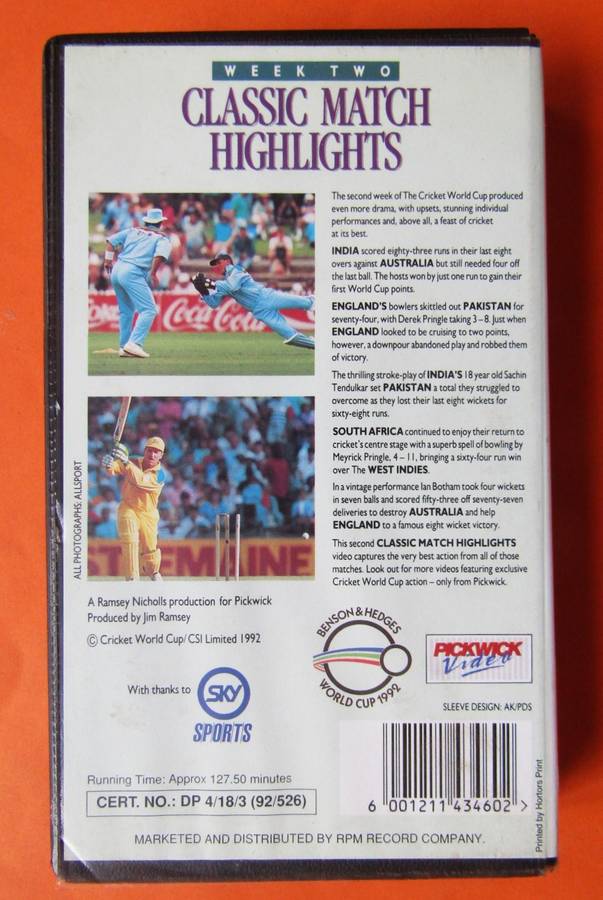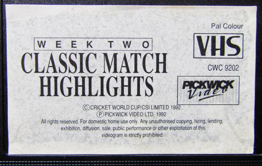 1992 Cricket World Cup - Classic Match Highlights - VHS Video Tape 1992 Cricket World Cup - Classic Match Highlights - VHS Video Tape 1992 Cricket World Cup - Classic Match Highlights - VHS Video Tape 1992 Cricket World Cup - Classic Match Highlights - VHS Video Tape