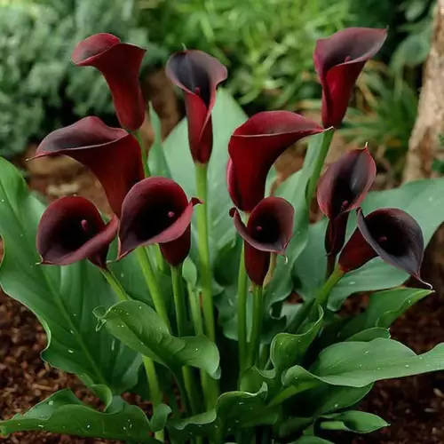 Calla Lilies are available in a multitude of colours and are ideal for use in beds and borders. They can be grown in containers, either outdoors or indoors on a sunny windowsill.
