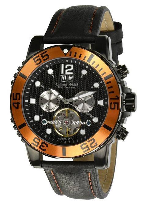 Exclusive models from Calvaneo 1583 are Quartz chronograph or Automatic watches using Swiss or Japanese movements (ISA, Ronda, ETA, Miyota).