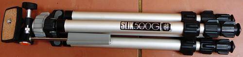 This SLIK Model 500G Tripod is in excellent condition it has four section legs which provide a height adjustment between 360 mm and 925 mm, the centre section increases this to 1170 mm. It weighs 559 grams.