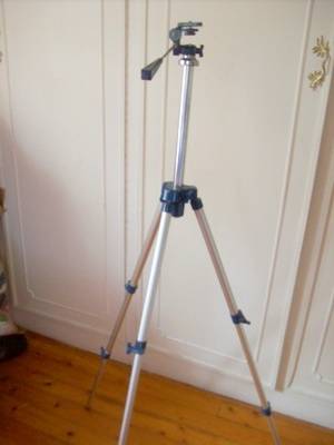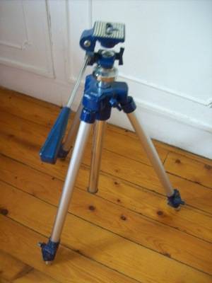 Nice blue coloured camera tripod with universal screw fitting, apart from the 1 foot having a black rubber end missing, in good condition, measures 520mm lowsetr stting to 1,380mm highest the feet can be adjusted to compensate for the missing foot on the 1 leg.marked what looks like Palca.