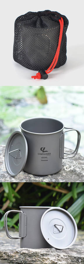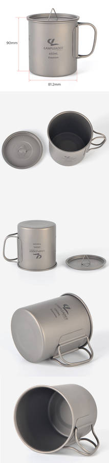 Campleader 450ml Titanium Cup Foldable Handle Water Drinking Mug With Cover Outdoor Camping