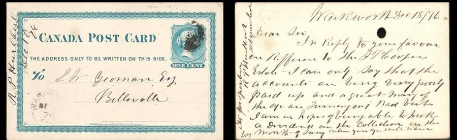 Important! - Please scroll to bottom & READ BIDDING CONDITIONS ***Auction Closes 11.00pm Wed Evening *** ***** LATE LISTING ***** CANADA - 3x VICTORIAN POSTCARDS Scarce & Fascinating items - Each is over 120 yrs old ------------------------------------------------------------------------------------------------------------------------------------------------------------------------------------------------------------ ![]() ![]() ![]() _________________________________________________________________________________________________________________________ ********* What You See Is What You Get ********* Any Mint stamps have Full Gum By Bidding on This Auction,The Winner Has, Without Exception Agreed : * To complete the order & EFT full payment at auction close. The PAYMENT CUT OFF is the next day,Thursday @ 3pm. * Failure to comply leads to the Immediate cancellation of the auction result so as to allow item re-listing * Regrettably, a cancellation automatically attracts a negative rating! ___________________________________________________________________________________________________________ |