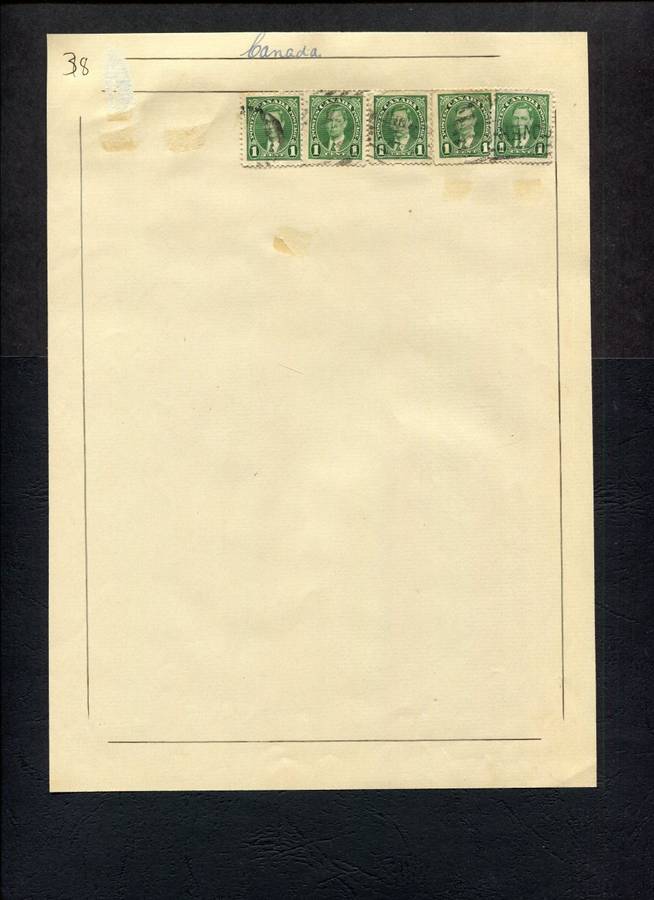 Canada - 5 Stamps Mounted (Hinged) on Old Album Page