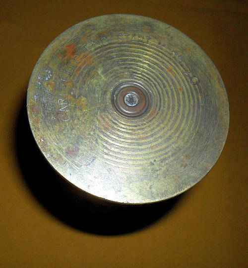 BRASS CARTRIDGE - ENGINE STARTER CARTRIDGE FOR THE SOUTH AFRICAN/RHODESIAN CANBERRA BOMBER/RECON AIRCRAFT . HEIGHT 15,5 CM - STAMP READS 'CAR ENG ELEC ENG START 65' . WEIGHT JUST OVER 500GRAMS. A NICE FIND .