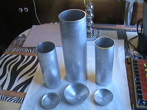 3 moulds for making unity set candles, it is very hard to find steel moulds. Big mould 30cm high and 10cm in diameter, the two smaller moulds are 20 cm high x 7cm in diameter, condition used as per photo's