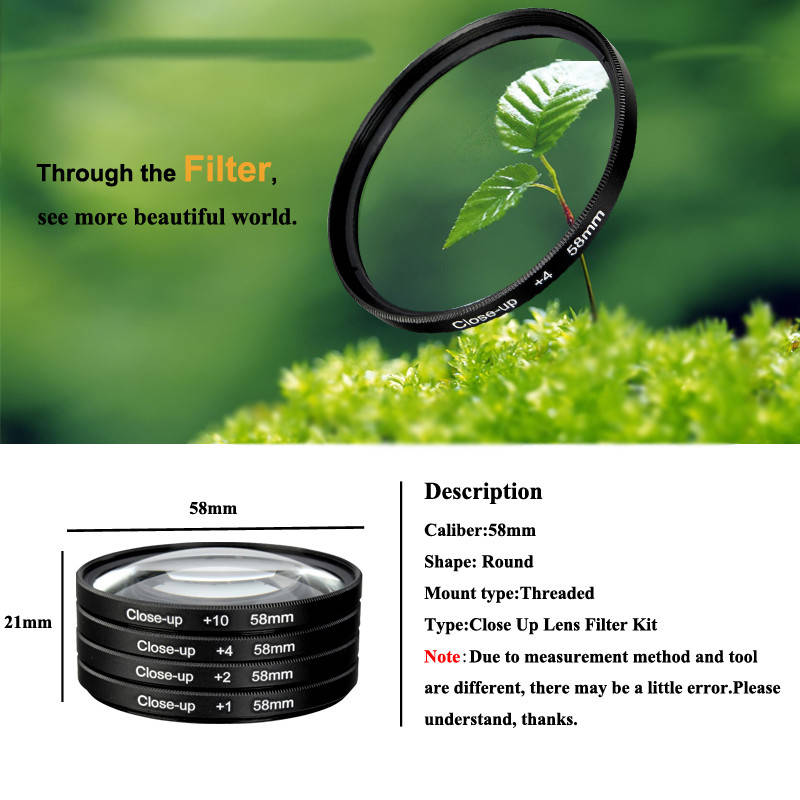 Canon 58mm Macro Close Up Filter Lens Kit +1 +2 +4 +10 for Canon