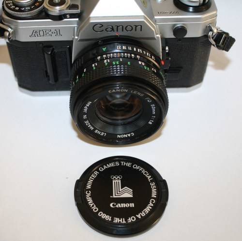 "Like new" camera including Hard Case,"1980 Olympic Winter Games the Official 35mm Canon Camera" Lens hood,original instruction manual etc..as per photos