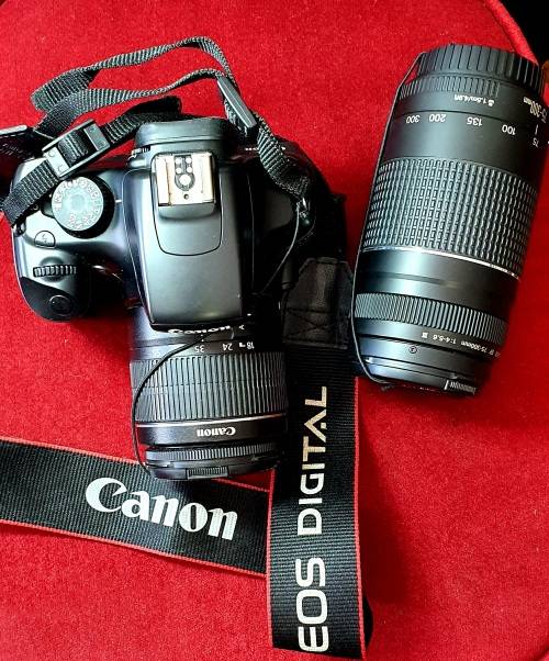 ON AUCTION: 1X CANON EOS 1100D CAMERA PLUS 75-300 ZOOM LENS PLUS EXTARNEL FLASH. AS GOOD AS NEW.
