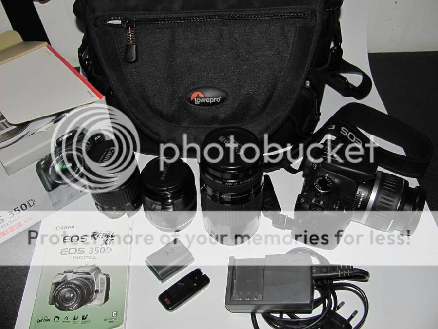 Canon EOS 350D EFS 18-55 Digital SLR Camera Kit plus three Canon lenses plus extras