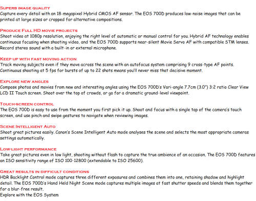 CANON EOS 700D , BODY ONLY , 18 MP , FULL HD ,EXCELLENT CONDITION
