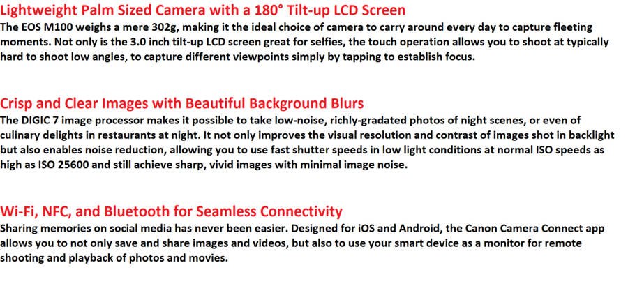 Canon EOS M100 Mirrorless Camera w/ 15-45mm Lens - Wi-Fi, Bluetooth, and NFC enabled