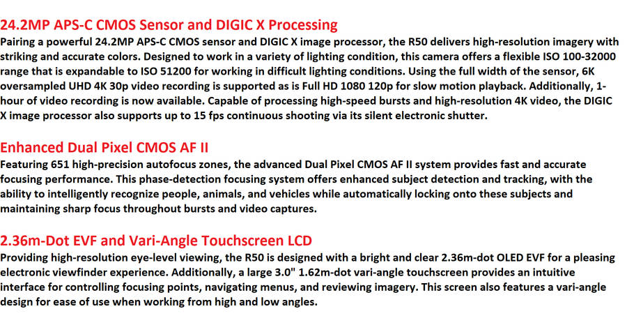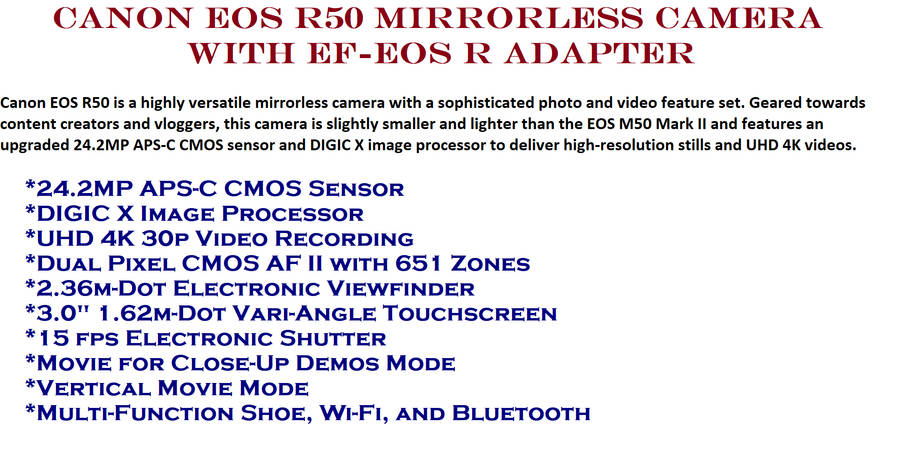 Canon EOS R50 Mirrorless Camera With EF-EOS R AF ADAPTER