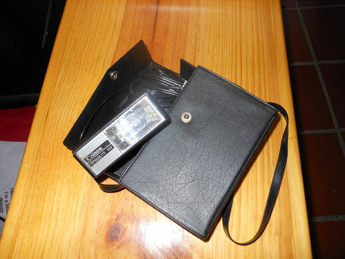 Canon Speedlite 420EZ Flash with slight damage. The plastic lens cover has some sellotape around the sides and the little foot has a bit on the side that broke off, but the flash still works.