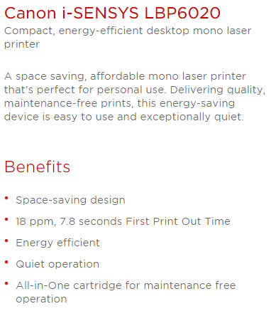 Canon i-SENSYS LBP6020 A4 Mono Laser Printer