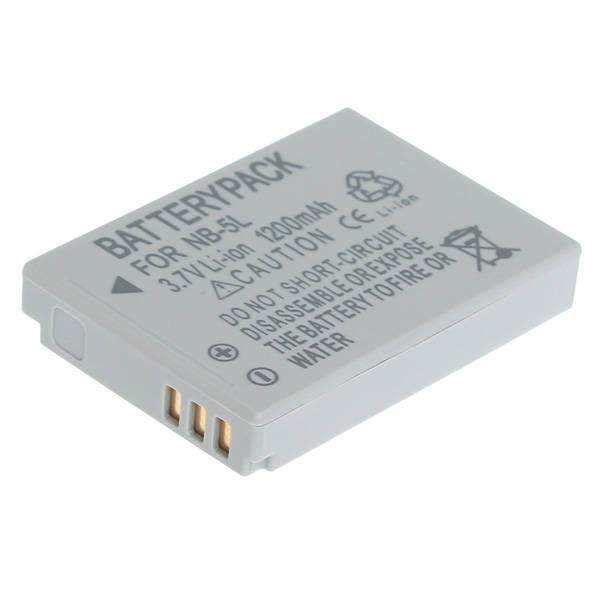 Description: Never run out of battery power when you're just about to capture the perfect moment! Time to get extra power for your digital video camera/camcorder.High capacity, rechargeable DC 3.7V 1200mAh Li-Ion Battery with premium cell.Latest Lithium Ion battery technology gives the best performance possible compared to other battery technologies such as Nickel Metal Hydride (Ni-MH).Best replacement for the original CANON NB-5L battery pack. Compatible with: IXUS 800/IS/850/900/TI/950/960/970/980/860/870/90/IXUS SD970 IS/IXUS 990 IS /PowerShot SX200 IS/SX 210IS/SX220 HS/SX230 HS Specification: Color:Gray Net Weight:20g Battery Size:2.2cmx3.3x1.2cm Capacity:1200mAh Voltage:3.7V Package Included: 1 X NB-5L 1200mAh Li-ion Battery.