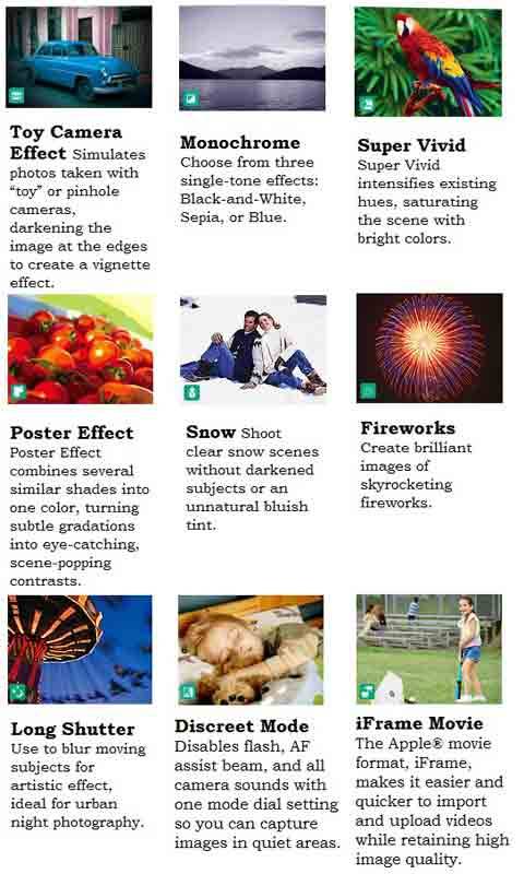 ISO Sensitivity Range :Auto, ISO 100 / 200 / 400 / 800 / 1600