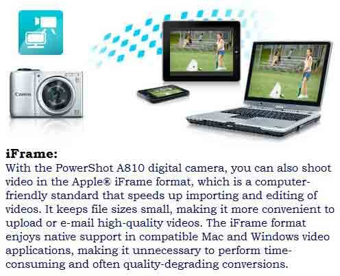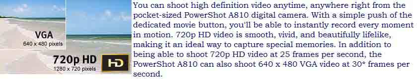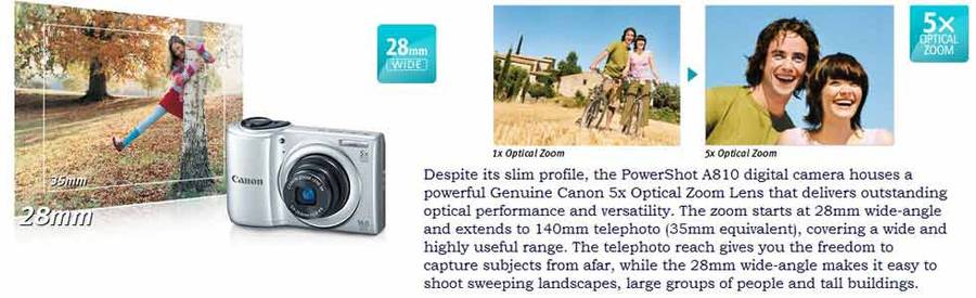 Photographers of all levels appreciate a camera – especially a go-anywhere compact digital – that takes the hassle out of capturing beautiful images. The PowerShot A810 gives you Smart AUTO – sophisticated Canon technology that makes getting that great shot as simple as pressing the shutter button. Smart AUTO automatically detects scenes by assessing various factors in both the background and the subject. Detected scenes are analyzed using 32 predefined shooting situations. The camera then makes optimal settings to ensure the best possible image capture when shooting still images. Smart AUTO also includes Advanced Subject Detection, which allows the camera to detect and track non-human moving subjects like animals and vehicles. With Smart AUTO, all you have to do is frame your shot and capture away.