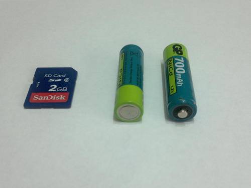 It is shipped with 2 AA rechargeable (fully charged) batteries and a 2 g/b memory card.