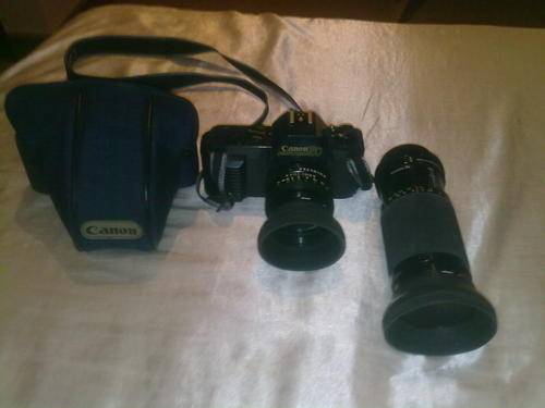 The Canon T50, was the first in Canon's new T series of 35mm single-lens reflex cameras compatible with Canon's FD lens mount. SLR sales were falling , and Canon chose to try greater automation to revive sales and remain competitive. This approach had found favor in compact cameras such as the AF35M "Autoboy" (Japan) or "Sure Shot" (US). The T50 had a power winder built in giving a continuous shooting rate of 1.4 frames per second, as well as an advanced auto-exposure mode, although it was still a manual focus camera. Unlike those compact cameras and the higher-end models in the T series, the T50 did not have power rewind, relying on a manual crank for that. The camera's electric systems were powered by two AA batteries in the grip, which gave enough power to shoot 75 24-exposure rolls, or 50 36-exposure rolls.