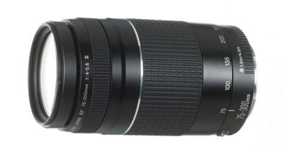 The Canon 75-300mm f/4-5.6 III USM is compact, relatively slim and has an uncluttered, simple design. It’s also quite lightweight, at only 480g, and on a Canon D-SLR with a 1.6x crop-factor, produces the 35mm equivalent of 120-480mm.