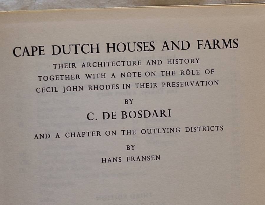 Cape Dutch Houses and Farms by C de Bosdari Softcover 1971 Third Edition