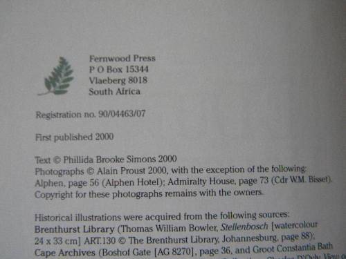 Soft cover in very good condition. First published in 2000 by Fernwood Press with 256 pages and well-illustrated. Proud heritage of the southwestern Cape. Most are thatched, gabled and whitewashed, other are flat-roofed, double-storeyed. To each a story is attached, and together their stories chronicle the life of settlers at the Cape over the past three hundred years. Postage in RSA = R60.00.