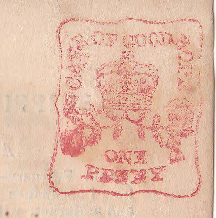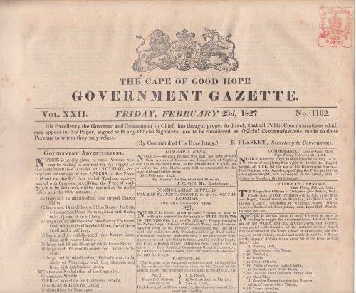 Cape of Good Hope 1827 Gazette complete note 1d duty applied.
