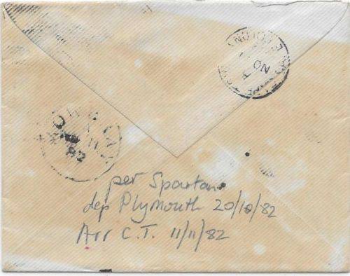 1882 GBQV 6d on Paddington cover addressed to Mrs Maclear Mowbray Cape Town per ship Spartan departure Plymouth 20/10/82 driving Cape Town 11/11/82, from Maclear Observatory correspondence, fine.