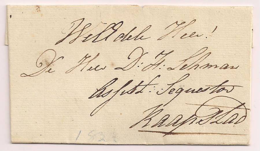 Cape of Good Hope (second British occupation period) undated (but c.1823 per known m/s note) letter wrapper addressed to de Heer DF Schman (+/-!) Asst Sequastor, Kaapstad. A nice, early item that shows well and conveniently small for an exhibit page. As scanned.