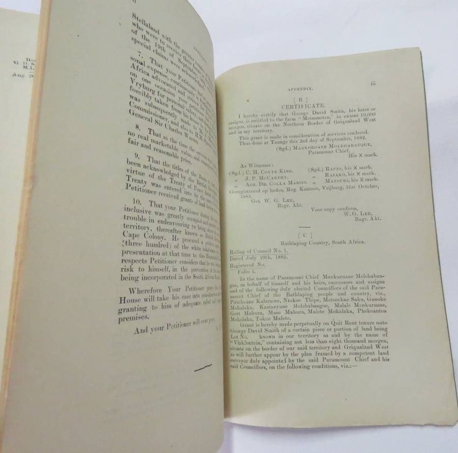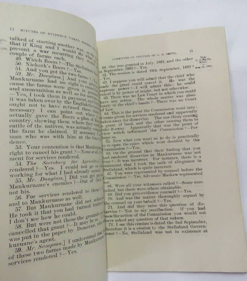 Cape of Good Hope report of the select committee on the petition of GD smith - 1900 - Regarding his service as agent to chief Mankuruane and in Stellaland