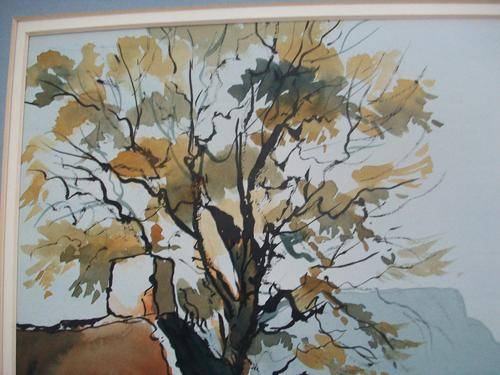 Signed and in a decent mount and frame which you won't have to replace. The painting is bright and unfaded and in excellent condition. Ready to hang on your wall.