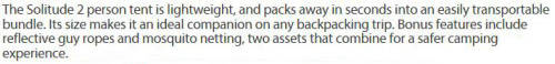 Cape Union Mart Solitude 2 Man Tent - used once - as new condition