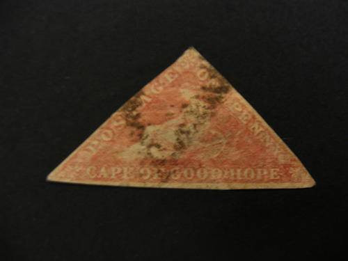 CapeTriangle SACC 5. 1d brick red .Cream Paper no blueing at all. Small triangular cancellation.