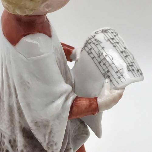 This adorable, vintage porcelain figurine of a young choir boy singing is beautifully hand-painted and in excellent condition. There's a small painted blue mark on the base of an 'N' below a crown, which I believe to be one of the 'Capodimonte' trademarks. This lovely figurine stands 15,5cm high, has a base diameter of 6,8cm and weighs 243g.