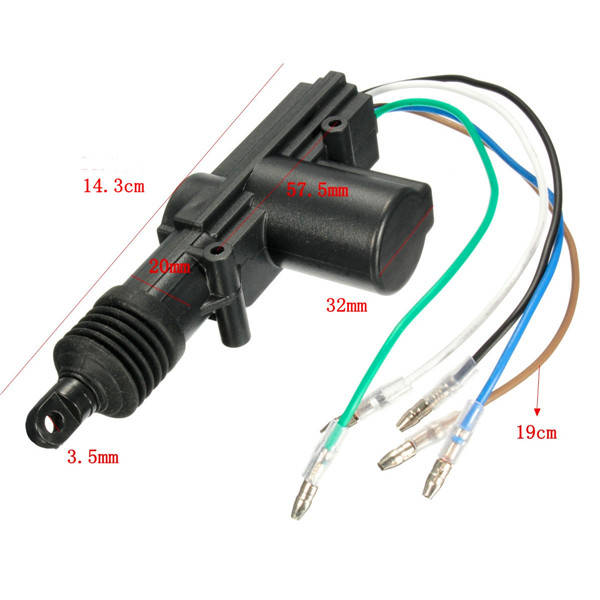 Color: Black Actuator Material: Plastic Voltage: 12V DC Temperature: -20 to +70 deg. C Current consumption: 0.15 to 2.22A Endurance (up and down): 100,000 times Push and pull force: 4kg Fitment: Fits all vehicles-direct gear gun type (2 or 4 Door)