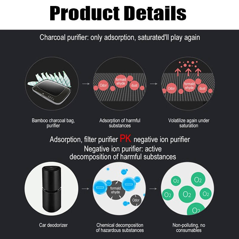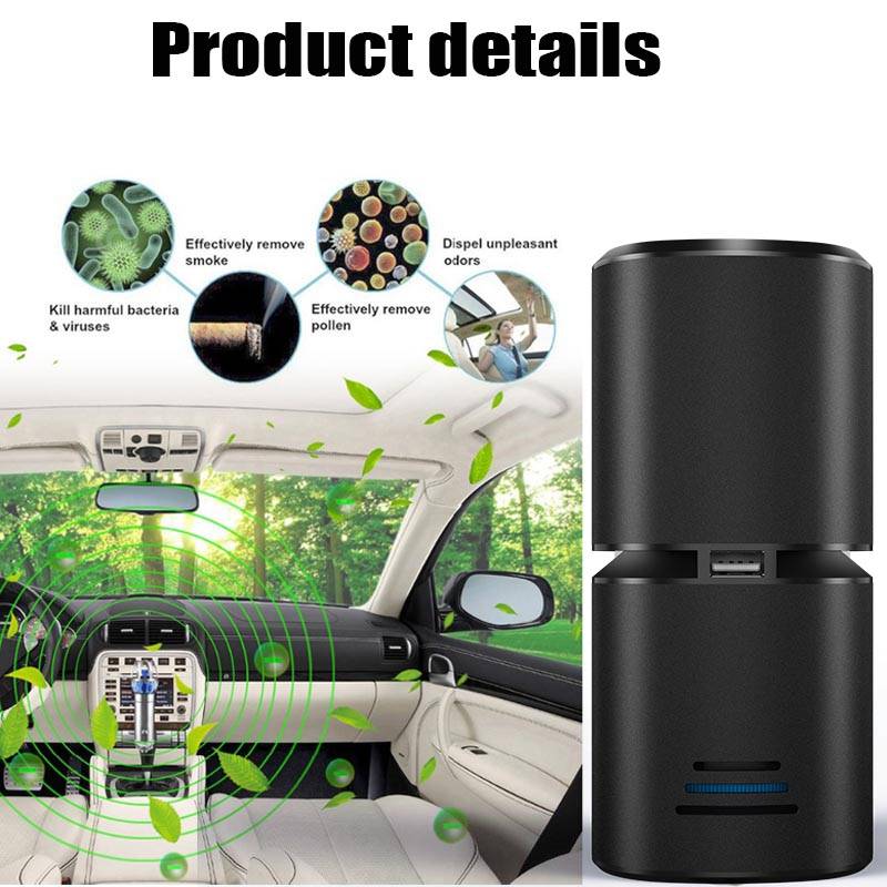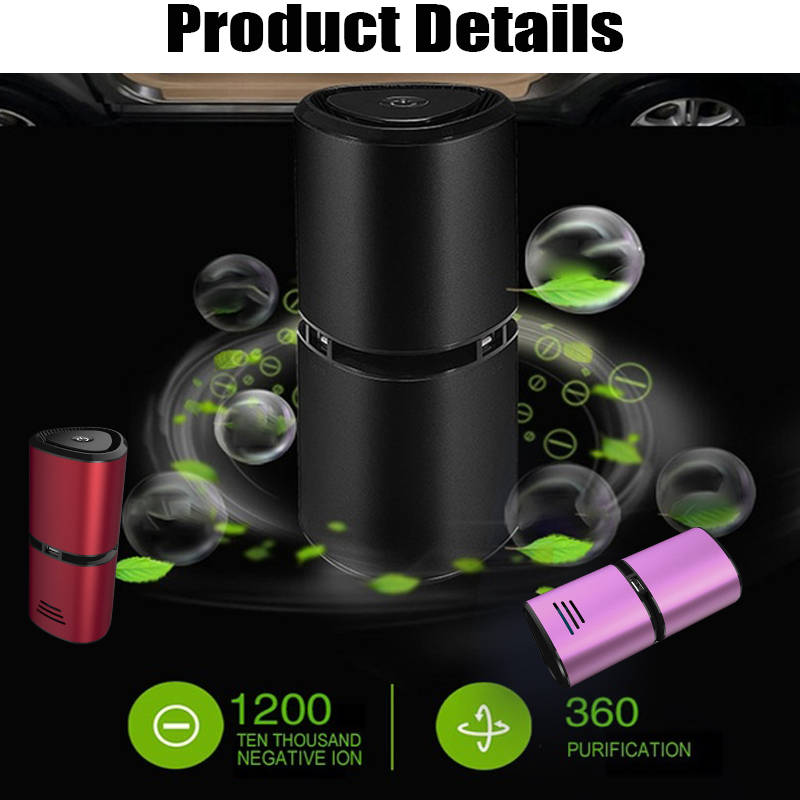 feature: The best gift of each season, it will never be outdated. It can be on your side, driving, working at your desk or lying in bed while you sleep. Provide you with fresh air and a healthy life. Ideal for people with allergies, nasal congestion, nasal congestion, coughing, sneezing, and asthma. Reduces 99.9% of allergens, dust, pollen, smoke, odor, pet dander, Formaldehyde, mold spores and TVOC. Low noise: The noise of the car purifier is 30dB, which is almost inaudible. Give you a comfortable working or resting place. Portable and compact: The compact size makes it ideal for any small area below 32 Sq Ft, such as desktops, kitchens, pet rooms and bedside tables. The USB port is available. Even if the car cigarett e lighter is occupied by a car purifier, you can still charge the device with our car purifier. specification: Input: 12V-1A Rated power: <12W Negative ion concentration: 12 million / cubic Surface: aluminum alloy Size: 5.9 x 2.6 inches (height x diameter) packing include: 1 x car Air Purifier 1xUSB cable