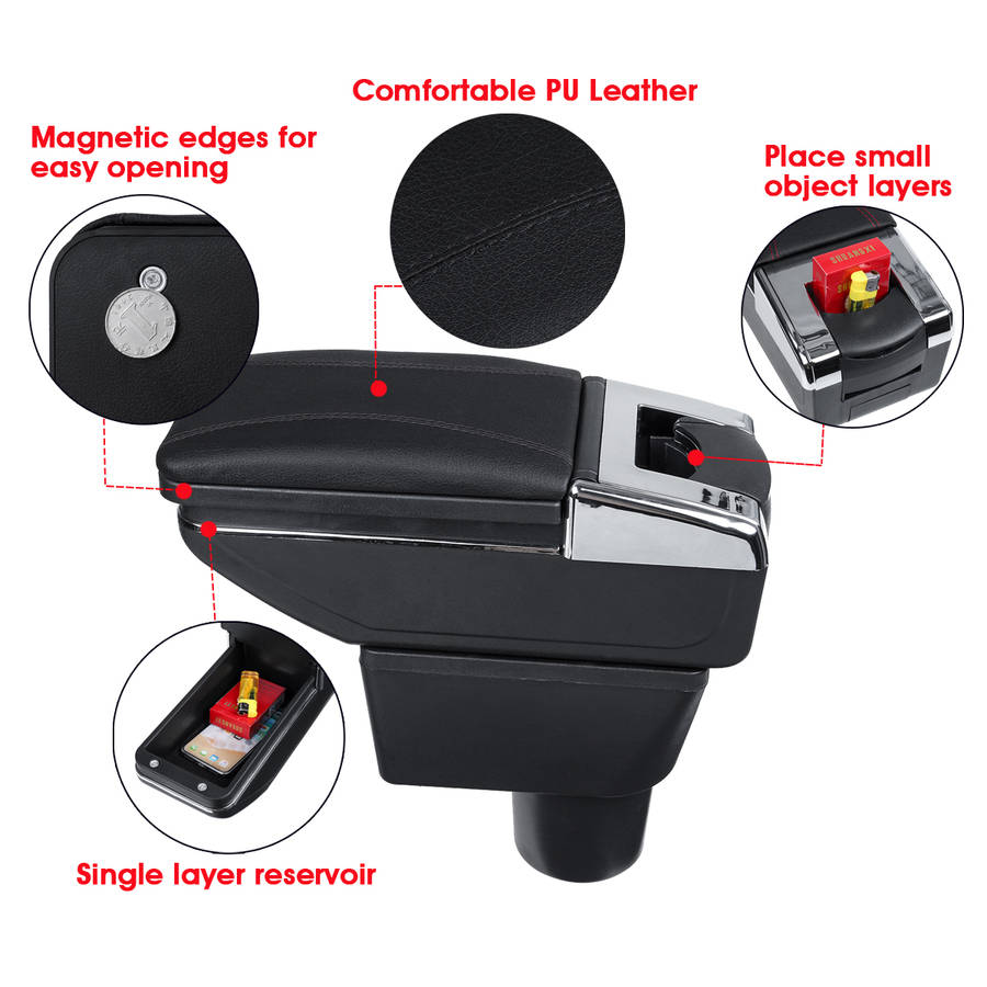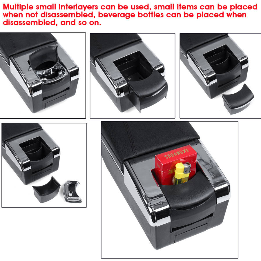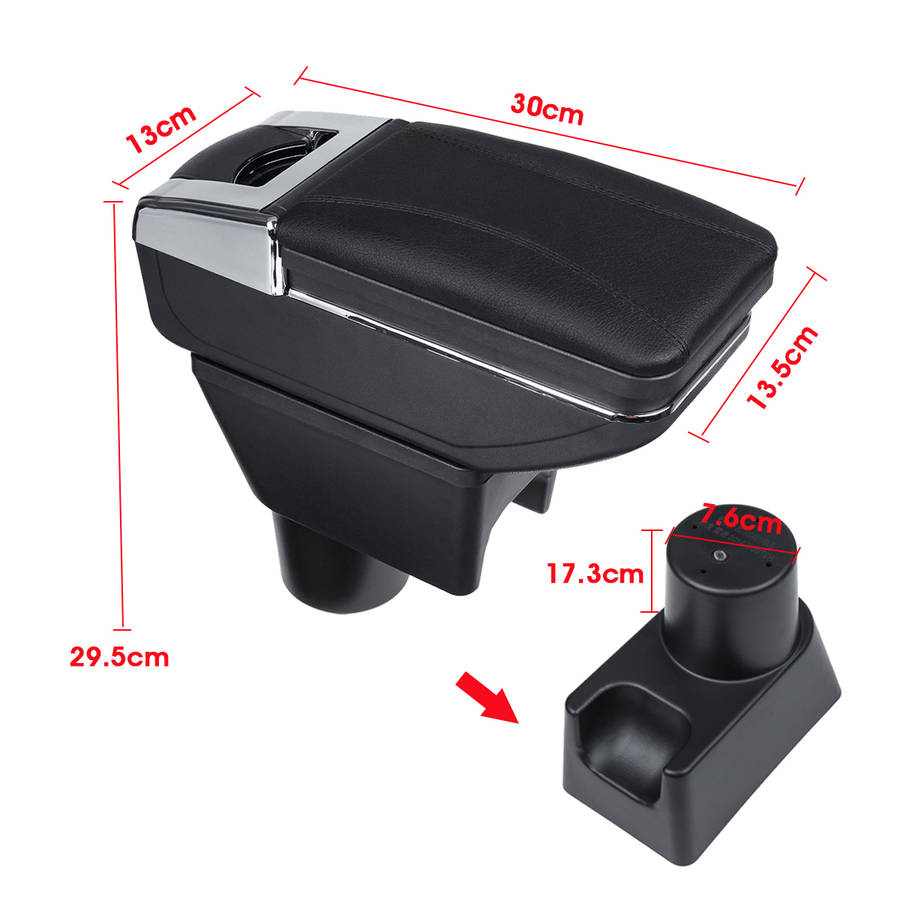 Specification: Model Number: D59282 Product Name: Car Armrest Box Material: PU Leather & Plastic Main Color: Black Line Color: Black / Red Size: 30cm x 13.5cm x 29.5cm (LxWxH) Bottom Diameter: 7.6cm Package Size: 47cm x 16cm x 23cm(LxWxH) Type: Armrests Quantity: 1pc