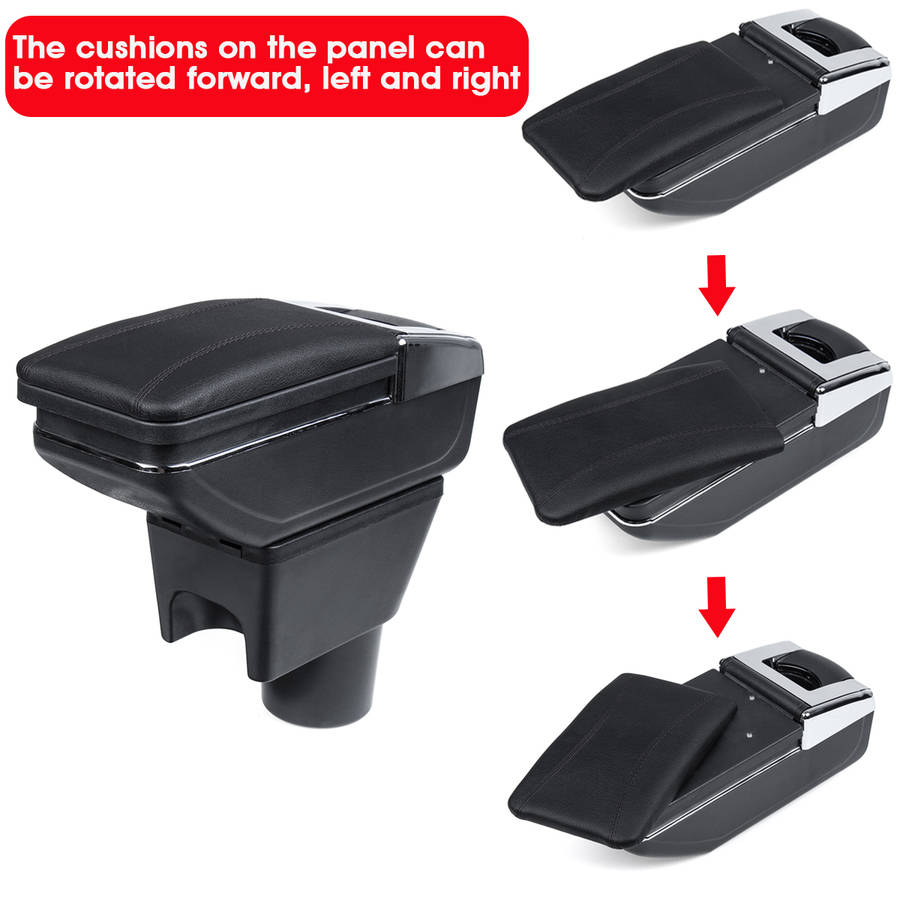 Features: 1.The cushions on the panel can be rotated forward, left and right, which is convenient for the main driver and co-driver to exchange. 2.The comfortable PU leather material is soft and comfortable, giving you a better experience during driving. 3.Helps to organize your objects such as coins, smartphone, tablet, etc. 4.The top cover can be slided forward, give better support to the arm. 5.Upgrades the interior of your car with unique style. 6.Direct replacement, easy installation.