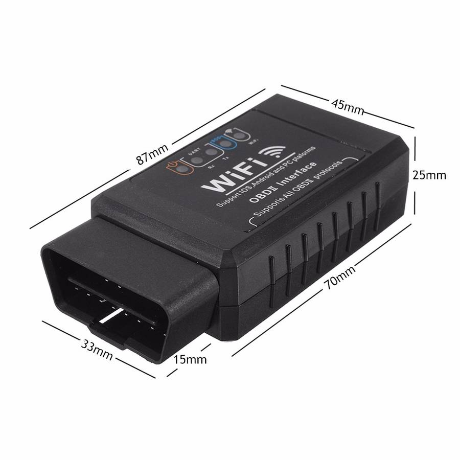 Specification: SSID: WiFi OBD IP: 192.168.0.10 Subnet: 255.255.255.0 Port: 35000 Range: 50pes (line of sight) Antenna: Internal Power Consumption: 0.75 Watts (with switch) Wifi Standard: 802.11a / b / g Operating temperature: -15 to 100graus Celsius Plastic: Automotive Grade Physical dimensions: 2,75x1,25x1,2polegadas