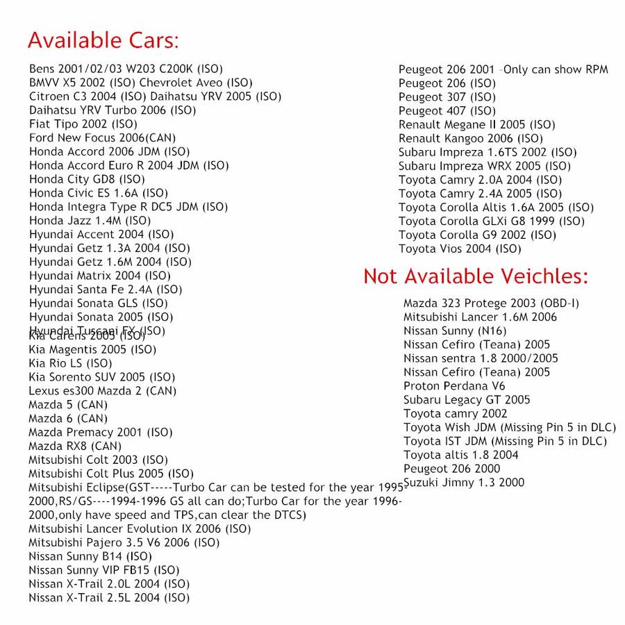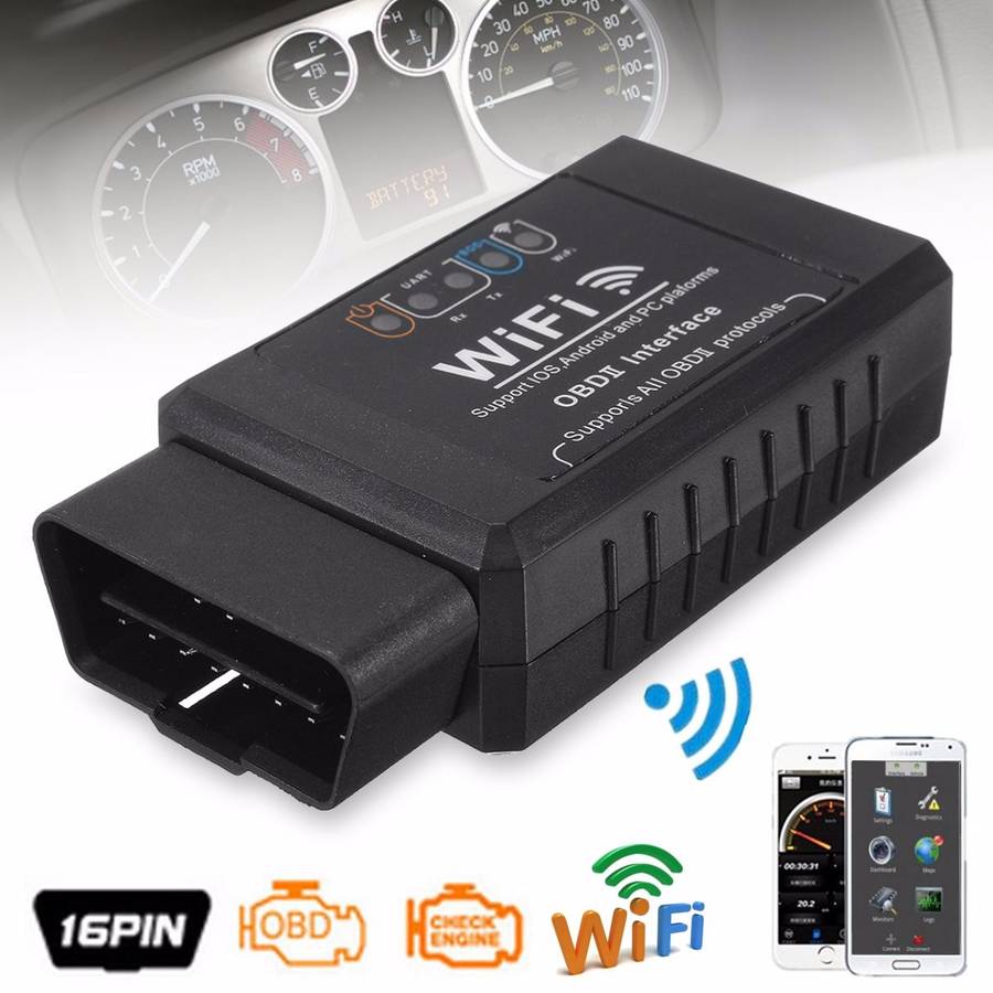 Feature: 1. Read diagnostic trouble codes, both generic and manufacturer-specific, and display their meaning (over 3000 generic code definitions in the database). 2. Clear trouble codes and turn off the MIL ("Check Engine" Light) 3. Display current sensor data, including: 4. Engine RPM 5. Calculated Load Value 6. Coolant temperature 7. Fuel System Status 8. Speed of the vehicle 9. Short Term Fuel Trim 10. Long Term Fuel Trim 11. Intake Manifold Pressure 12. Timing advance 13. Intake Air Temperature 14. Rate of air flow 15. Absolute throttle position 16. Tensions oxygen sensor / short-term fuel trims associated 17. Fuel System Status 18. Fuel pressure For adjustment cases Go to Wi-Fi settings, look for the Wi-Fi connection called "WiFiOBD" and connect Open your favorite application and connect to 192.168.0.10, Port 35000
