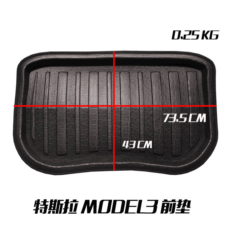 Car Cargo MatBlackForTesla Model 3 Specification: Product Name:Car Cargo Mat Condition:New Material:Strong Polyethylene Form (TPR - Thermal Plastic Foam) Color:Black Size: 73.5cm x 43cm / 28.94 x 16.93 (L x W) Placement on vehicle:Rear Trunk Quantity:1pc