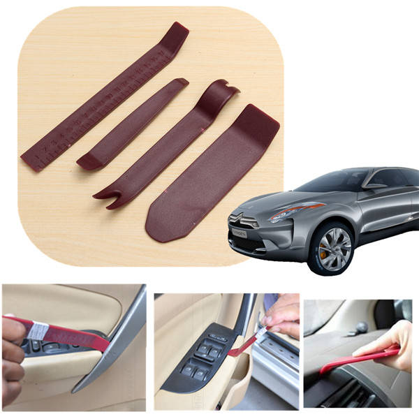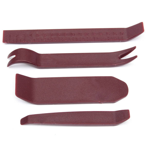 Description : 4Pcs Universal Car Dismantle Door Trim Panel Clip Lights Radio Removal Pry Open Tool Set A set of useful removal tool in the car is very helpful for car owners. Please look at this car radio removal tool set, it can solve the problem of removing car radio and repairing other parts of your car! Features : Easily remove Trim, Molding, Door panels and Dashboards. Great for automotive snap on trim panel and molding removal. Also works great for furniture repair soft and hard woods, antiques restorations, upholstery, leather work etc. Rugged durable plastic construction prevents marring. Works on interior and exterior trim, wide edge remover, narrow edge remover, pull-type remover, handle remover and upholstery clip remover. Easy to use and convenient to carry,save your space. Material : Plastic Package includes : 1 x Car Panel Removal Tool set (4Pcs) Details pictures :