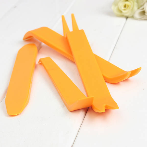 Works for interior and exterior trim and removal. Specification: Material: acrylonitrile-butadiene-styrene Color: Orange Size: 22cm/8.66" 19cm/7.48" 16cm/6.30" 14cm/5.51" Notice: 1.Please allow 1-3mm error due to manual measurement. pls make sure you do not mind before you bid. 2.The colors may vary in different display,pls understand. Package Included: 1 X Car Audio Remover