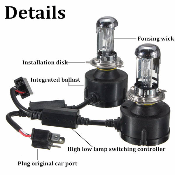 Car H4 Hi/Lo HB2 55W HID Headlight Bulb Conversion Kit with Slim Digital Ballasts