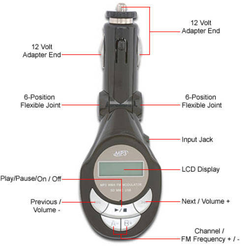 Simply Plug this Little gadget into your cigarette socket in your car, copy all your Mp3 files to your memory card or USB and Listen to your music on the move. Saves you hundreds of $$$ installing a Mp3 player in your car. Plus it's portable, so which ever car you're in, you can move with your player. It comes with the little nifty remote as pictured above, so you don;t have to keep stretching out you hand to change the track forward and back.
