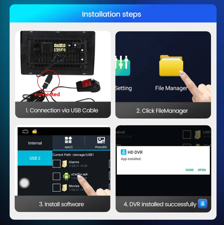 > You can watch videos on the radio by connecting USB.Easy to connect and easy to watch.
